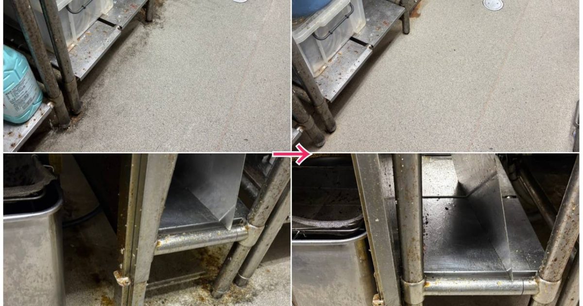 本日は、厨房の床中心に作業させて頂きました。